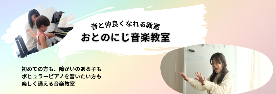 東京都東久留米市にある「おとのにじ音楽教室」は、初めてピアノを習う子どもから大人の方や、障がいを持つお子さまを対象に、、心と体の成長や発達を促すレッスンをしています。